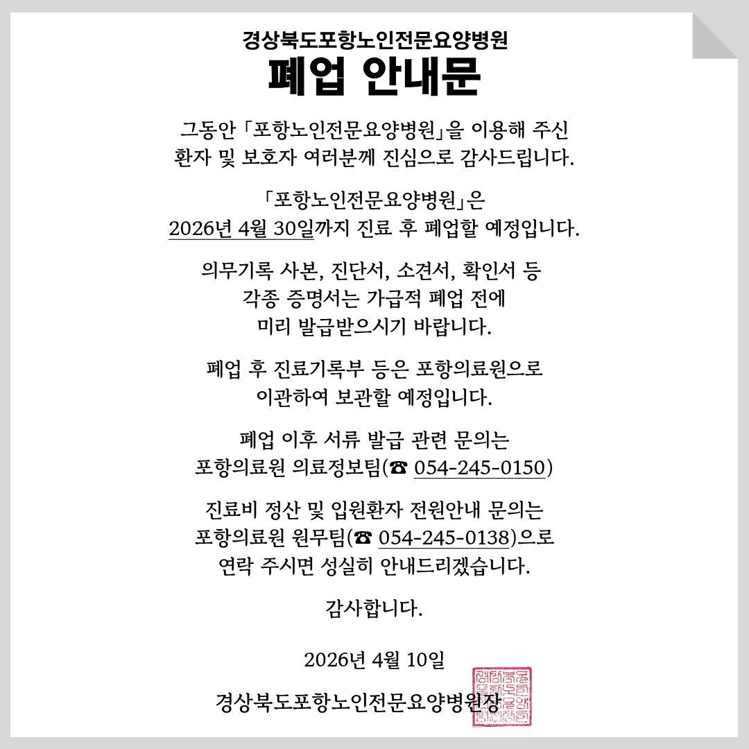 * 경상북도포항의료원은 국가보훈 위탁 의료기관입니다.